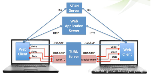 ICE将通过一个STUN服务器告诉应用程序它的公网地址是什么(从NAT和防火墙的另一侧看到的公网地址),并使用一个TURN服务器作为中继,防止 P2P通信失败。因此,一个功能完整的WebRTC应用需要: