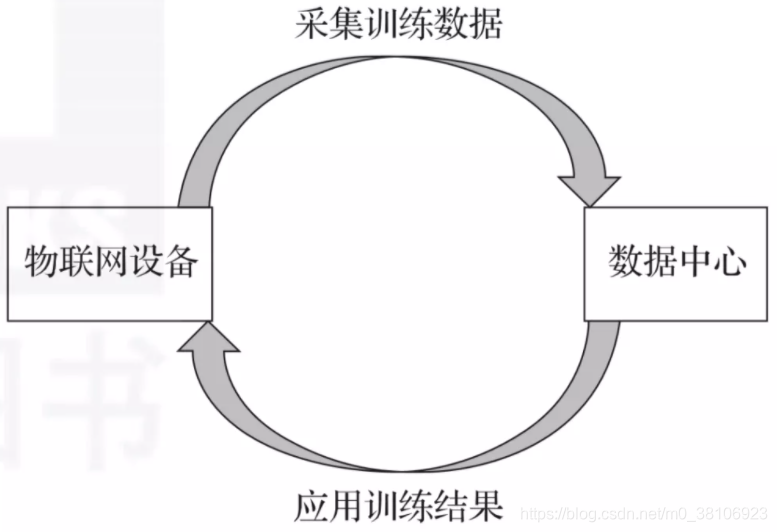 下图为物联网应用人工智能方法进行数据采集—迭代的循环。通过物联网设备采集并训练数据,在数据中心完成训练后,将模型应用到物联网设备,并评估效果进行下一次迭代。